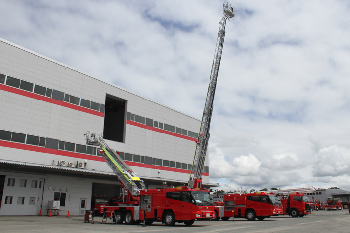 試乗を終え、市販ヘビーデューティSUVとはまるで違う乗り味を興奮しながら報告すると、「はしご車にも乗りませんか?」と言われた。こちらは運転ではなく、整備中の車両のはしごを体験させてもらえるという。