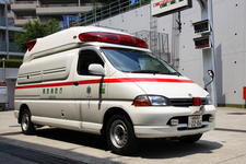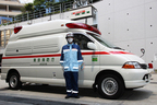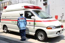 スライドドアを開けた瞬間、車内からいかにも衛生的な「病院の匂い」が漂ってきました。車内には、蘇生用の電気ショックを備えた救急バッグ、酸素ボンベ、酸素吸引器、血圧計、応急用ギブス、担架などの救急医療器具が装備されております。 消防車の出動頻度は月に2~3回程度ですが、救急車の出動は高く、多い日では1日に10回以上も出動することがあるようです。