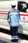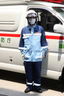 救急隊が着用する救急服は、負傷者の出血や嘔吐物から隊員の身を守るため、完全な防菌対策が徹底されています。