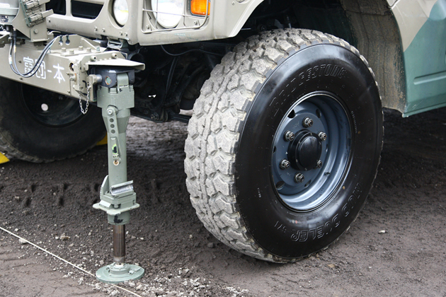 ミサイル発射の際、車体を安定させるアウトリガーが前後合わせて4本あります。