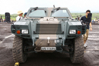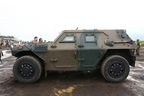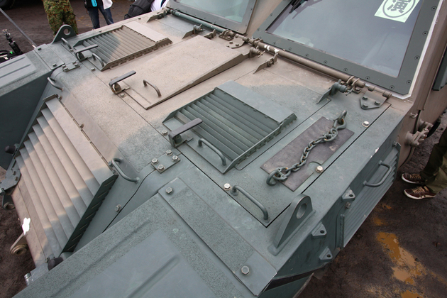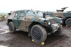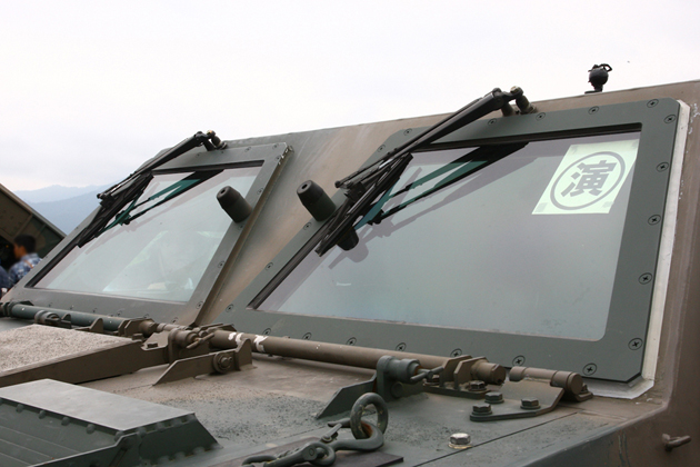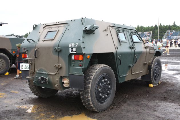 「ライトアーマー(愛称)」こと「軽装甲機動車」。主として戦略機動および戦場機動などに使用される車両です。固有の武装はりませんが、ルーフハッチから「5.56mm機関銃」の車載射撃や「01式軽対戦車誘導弾」の車上射撃が可能。同じく陸上自衛隊が所有する「高機動車」に近い性格ですが、車両そのものが装甲化されている点で大きく異なります。●全長×全幅×全高m=4.4×2.04×1.85m ●空車重量=約4.5t ●最高速度=100km/h ●乗員4名